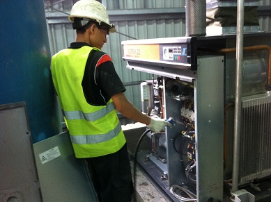 - Máy nén khí trục vít loại có dầu: Thường được sử dụng để cung cấp khí nén cho máy công cụ hoặc một số ngành sản xuất không yêu cầu khí sạch. Khi máy nén khí đã nén đến áp suất nhất định được cài đặt sẵn, qua các thiết bị xử lý khí nén như tách dầu sau đó cung cấp cho các thiết bị và các vị trí sử dụng khí nén không yêu cầu khí sạch (trong khí nén vẫn còn hàm lượng dầu dù là rất nhỏ).